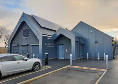 The design aims to take advantage of the prominent site at the top of Bakers Brae and demonstrate the innovation with use of a double pitch form and modern materials common in the commercial kitchen environment.